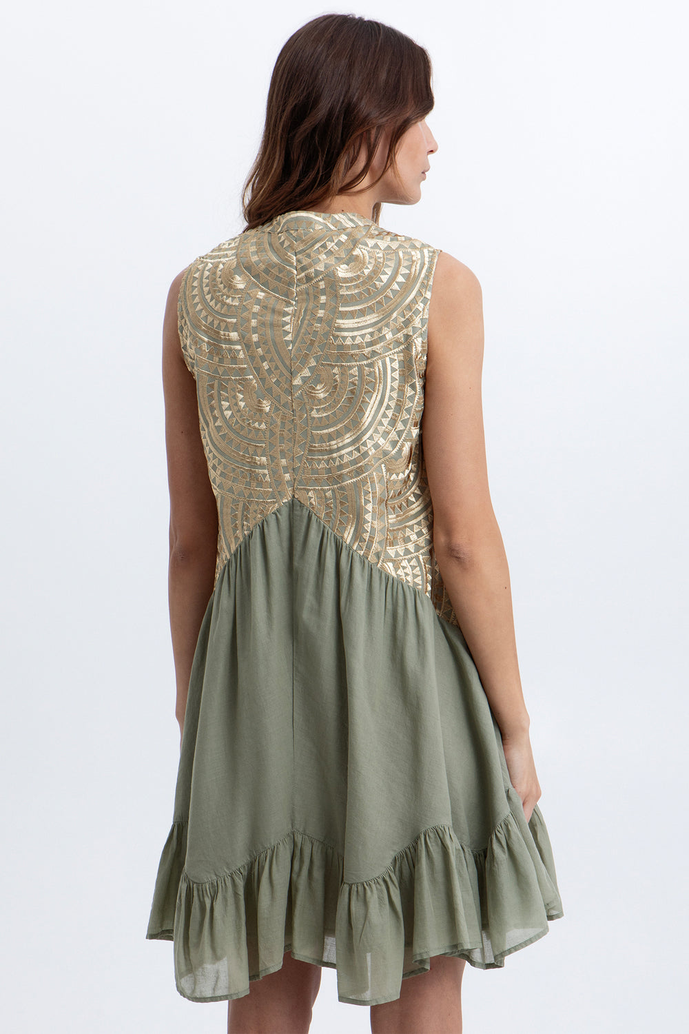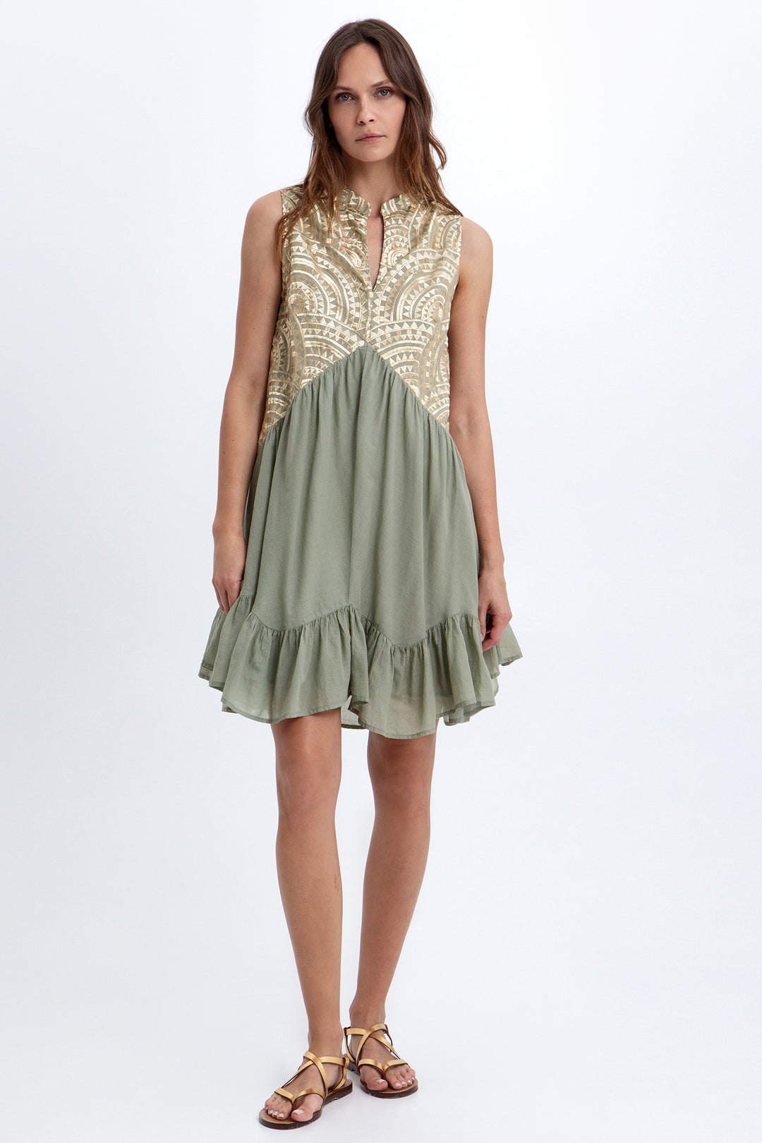 Greek Archaic Kori S26K-3103167 Sage Gold Sleeveless Dress 2701