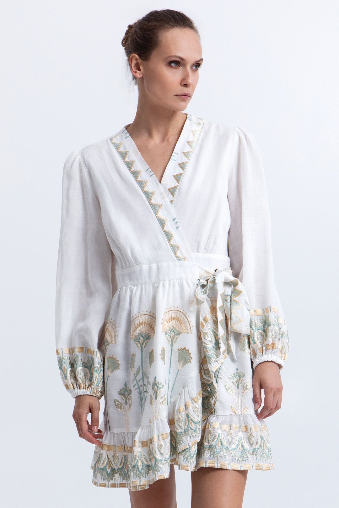 Greek Archaic Kori S26K-2143063 Sage Gold Lefkada Linen Dress 1701