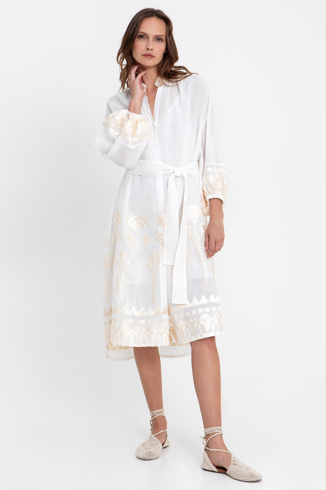 Greek Archaic Kori S26K-4075057 White Champagne Papyrus Dress 4102