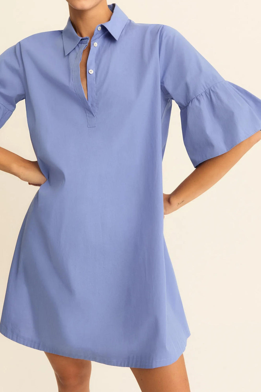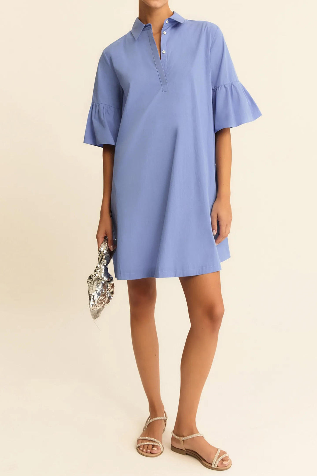 Emme Emmepoche Periwinkle Blue Flounce-Sleeve Dress 2615221192200