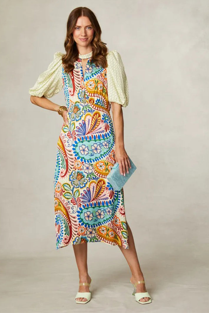 Let the print shine with simple heels and a clutch for an event, or dress it down with wedges and a denim jacket for a more relaxed summer look.