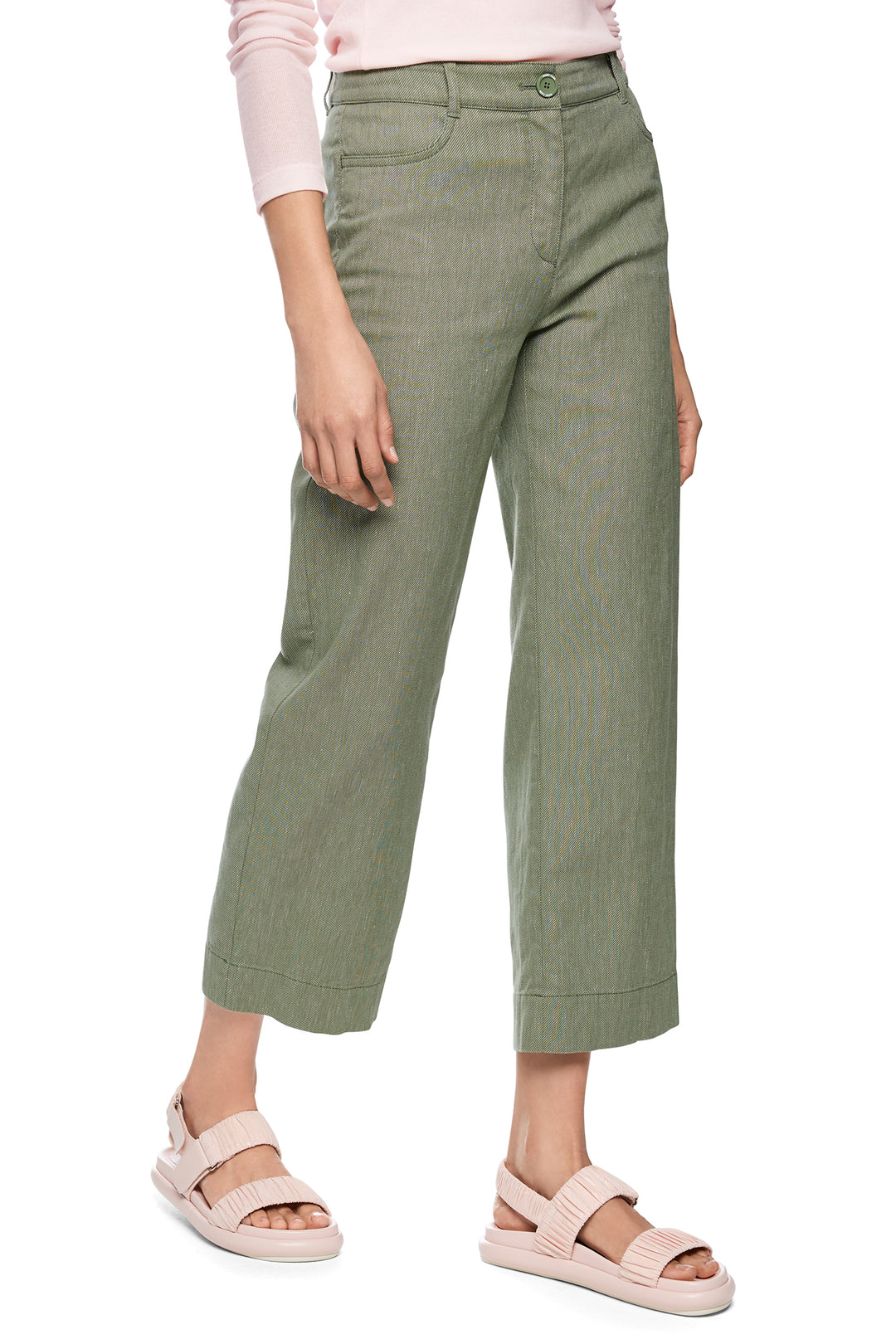 Marc Cain Sports AS 81.41 W30 574 Olivine Green Cropped Linen Blend Jeans