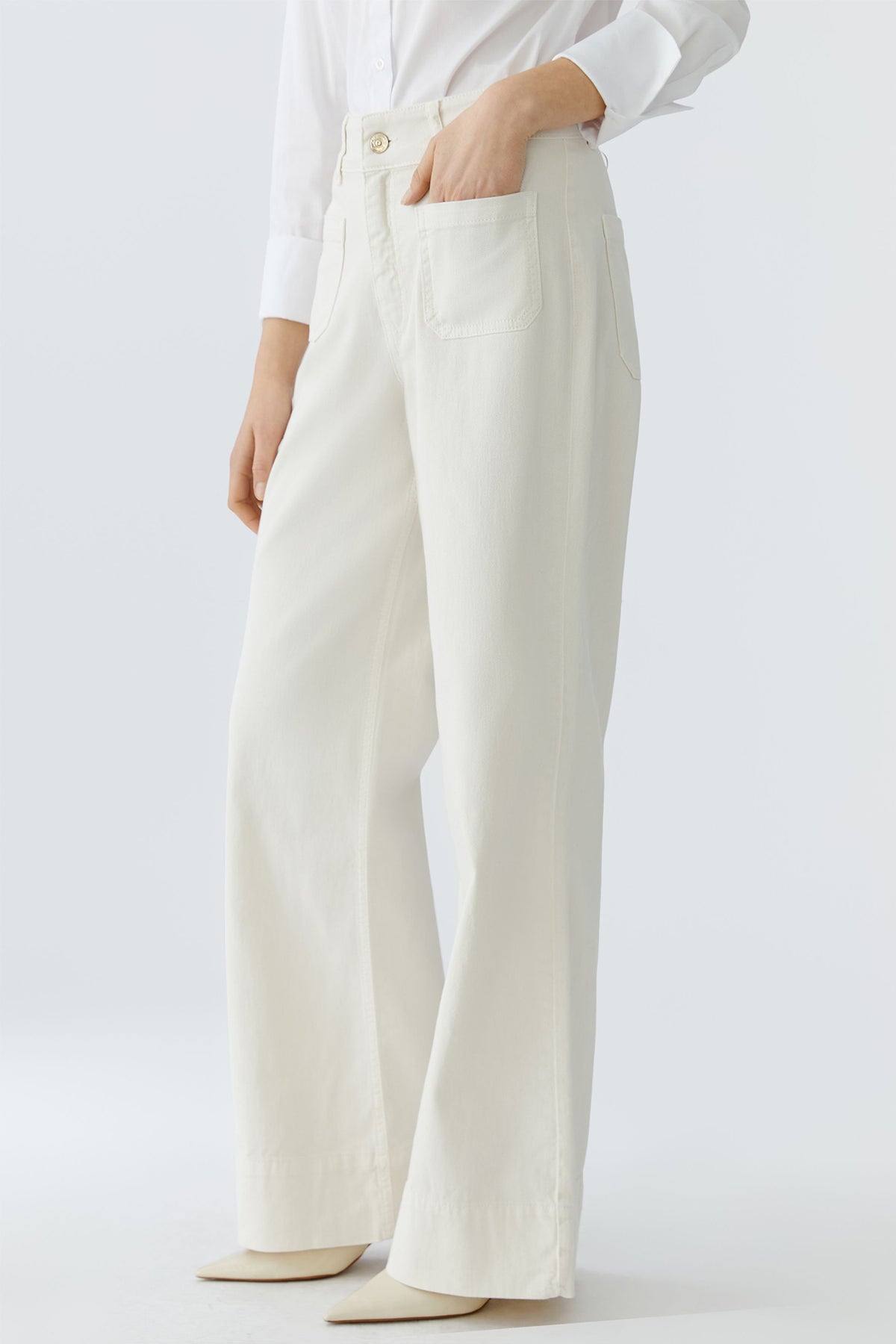 Oui 97657 Whitecap Grey Offwhite High Waist Wide Leg Jeans