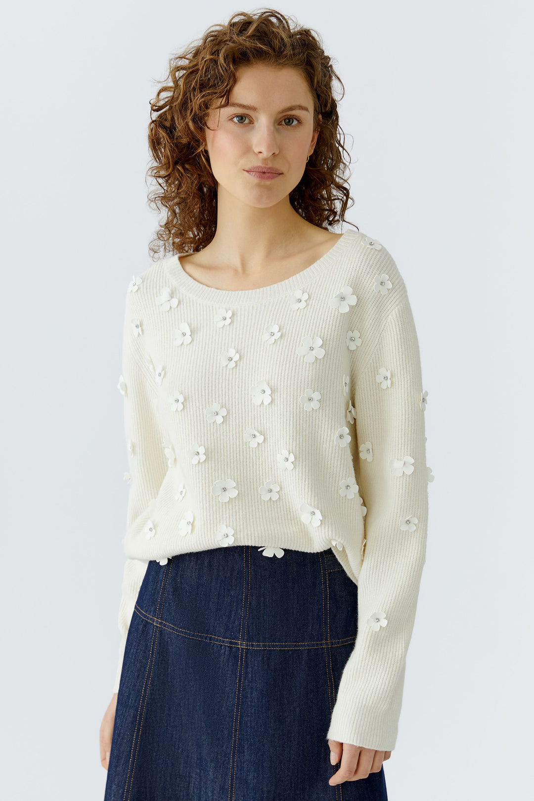 Oui 96701 Gardenia Cream Flower Detail Jumper 1018