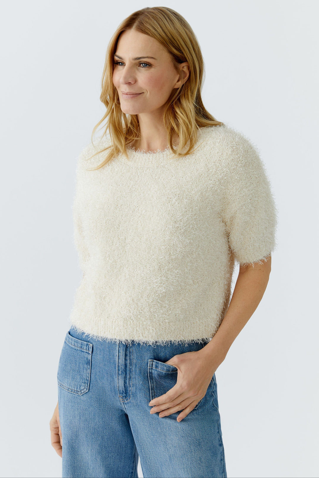 Oui 96754 Whitecap Cream Short Sleeve Jumper 1088