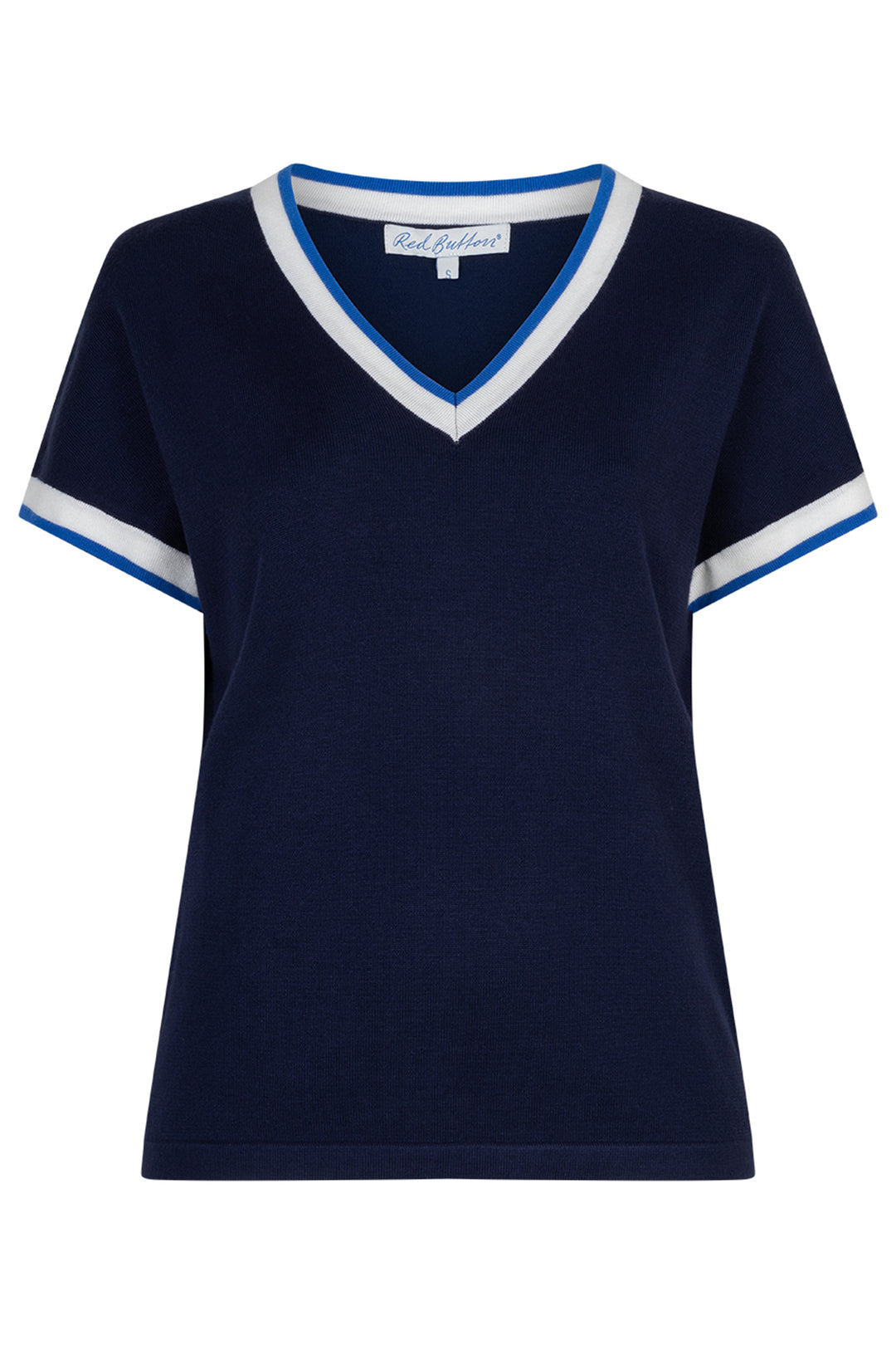 Red Button SRB4977 Jerry Dark Blue V-neck Striped Rib Jumper