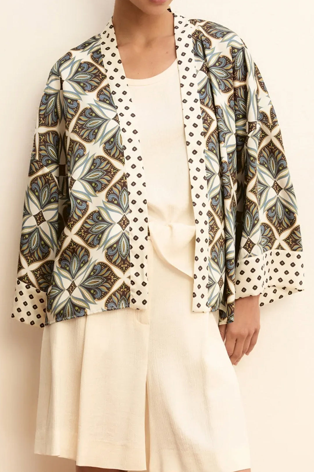 Emme EMMATOLLO Wool White Print Twill Kimono 2615191041200