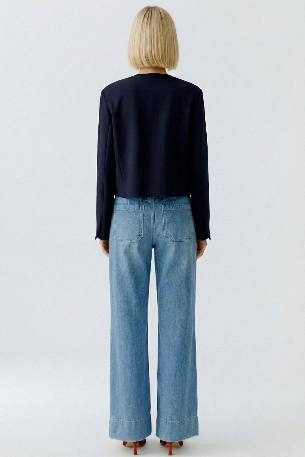 - Cropped length that flatters the waist and works beautifully with high-rise bottoms