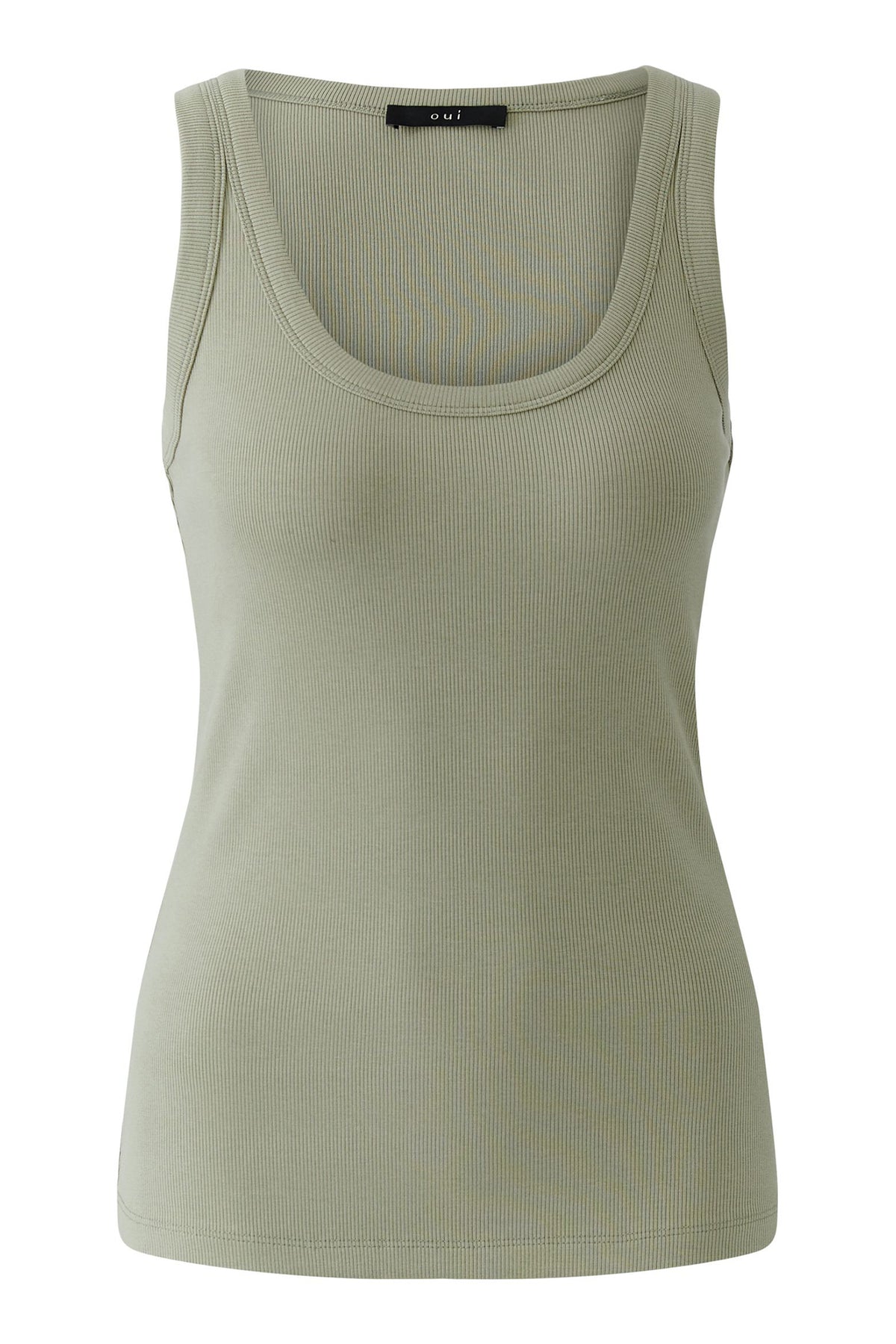 Simple yet stylish, the Oui 97459 Seagrass Green Tank Top is a versatile layering piece for your wardrobe. Crafted from soft ribbed fabric in a muted seagrass green shade, this tank top offers a flattering fit with a classic scoop neckline and wide straps. Perfect for warm weather or as a base layer under jackets and shirts.