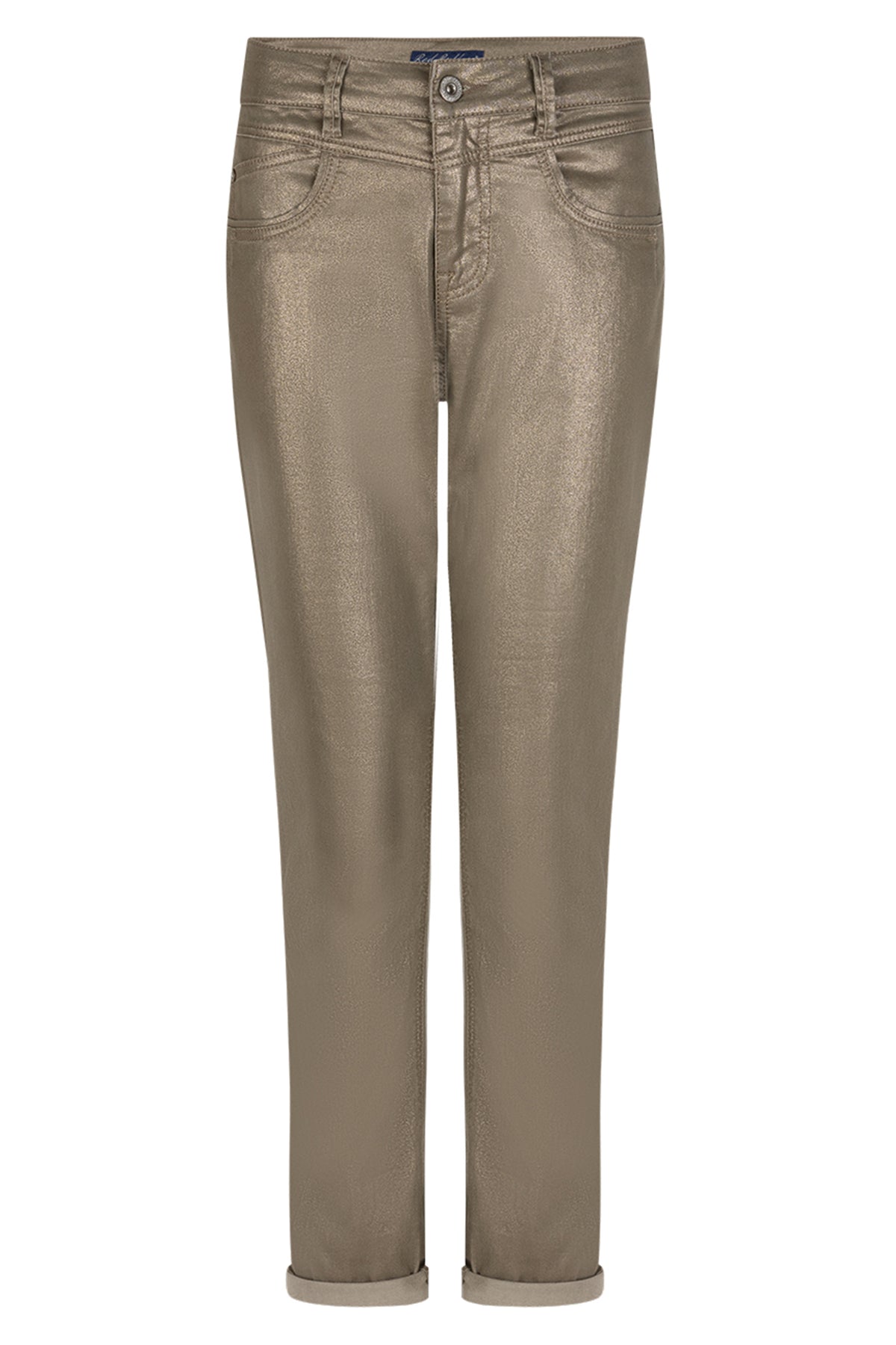 Make a statement with the Red Button SRB4705 Camilla Khaki Sparkle Jeans—a bold blend of denim structure and metallic sheen. Cut in a tapered silhouette, they feature a high-rise waist, classic five-pocket styling and a khaki gold sparkle finish for standout appeal.