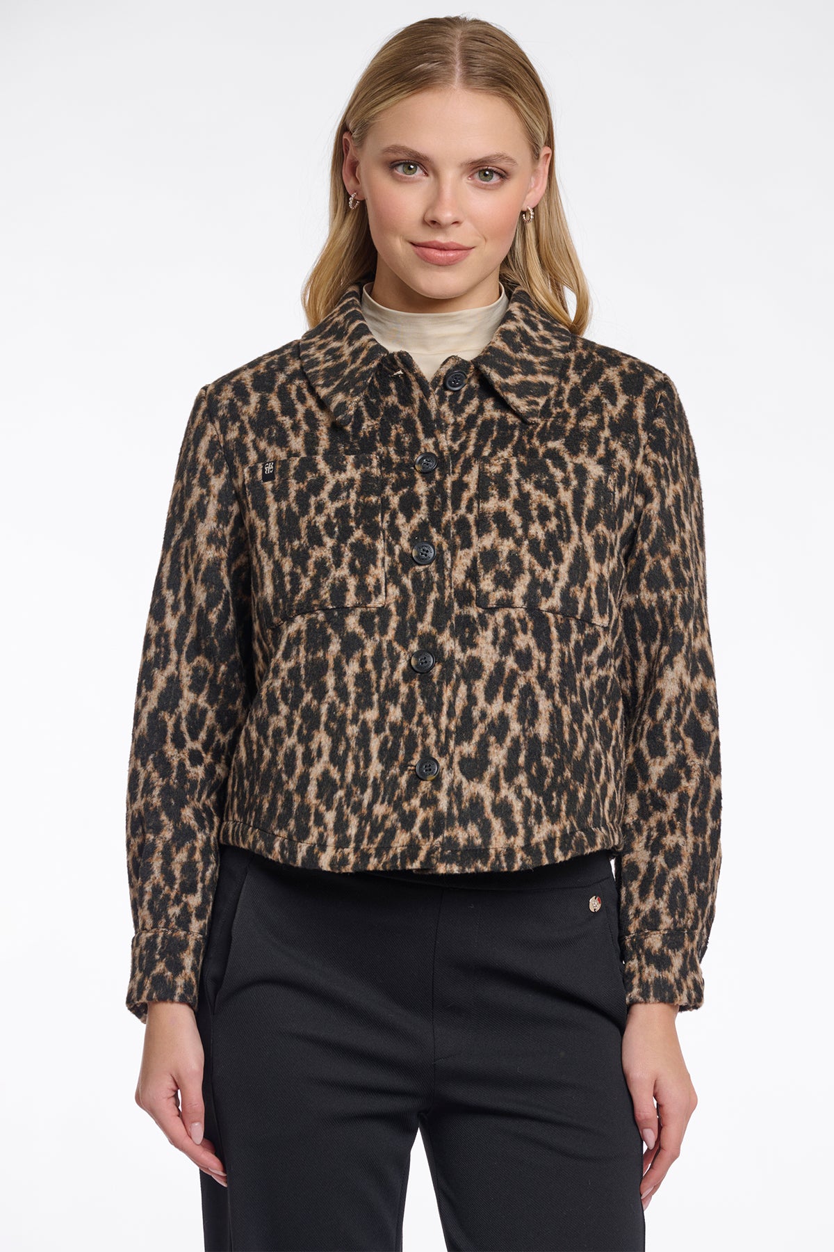 Make a bold statement with the Rino & Pelle Lize Leopard Print Short Jacket, perfect for adding a touch of personality to your everyday and evening outfits. This cropped jacket features a striking leopard print, ideal for those who love to stand out while keeping cosy on cooler days. The button-down front and practical pockets blend style with functionality, making it a versatile piece for both casual and smart occasions.