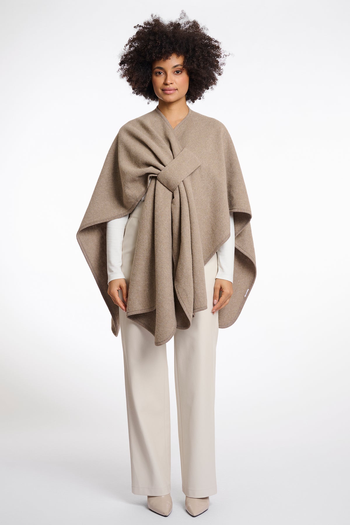 Style over a roll-neck and tailored trousers for a polished look or pair with jeans and ankle boots for casual sophistication. This cape brings warmth and style to every outfit, making it a must-have for your wardrobe.