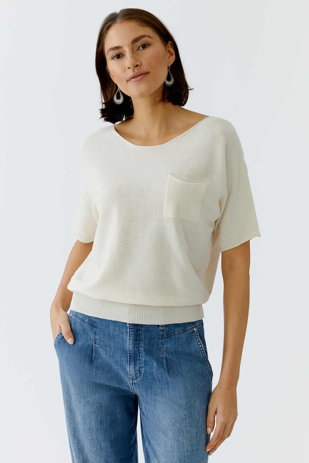 Oui 97242 Offwhite Wide Neck Short Sleeve Jumper