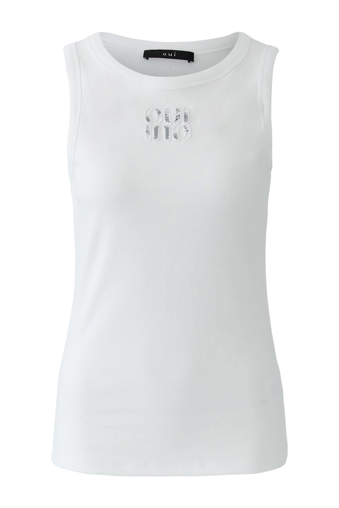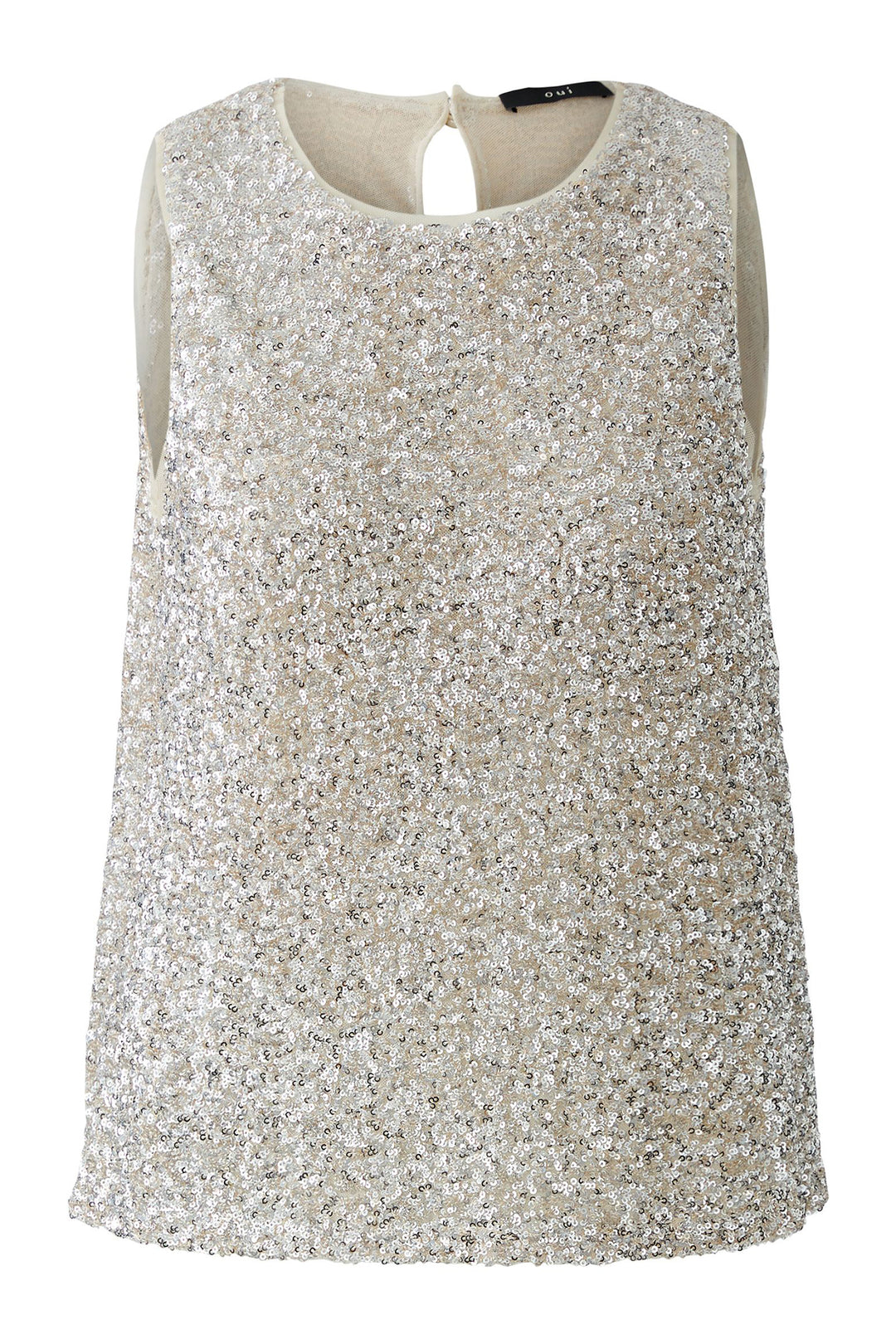 Oui 97462 Silver White Sleeveless Sequin Top