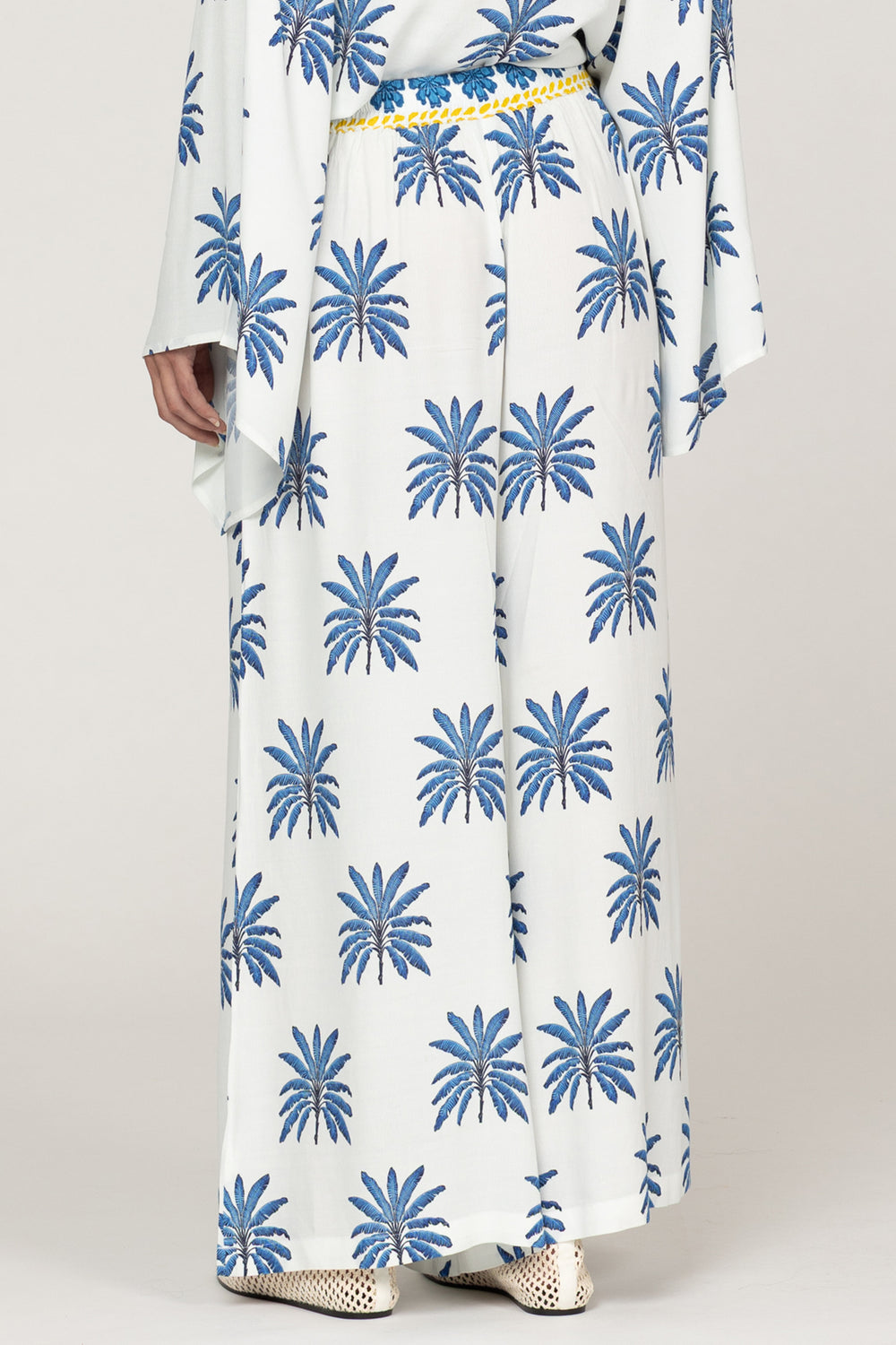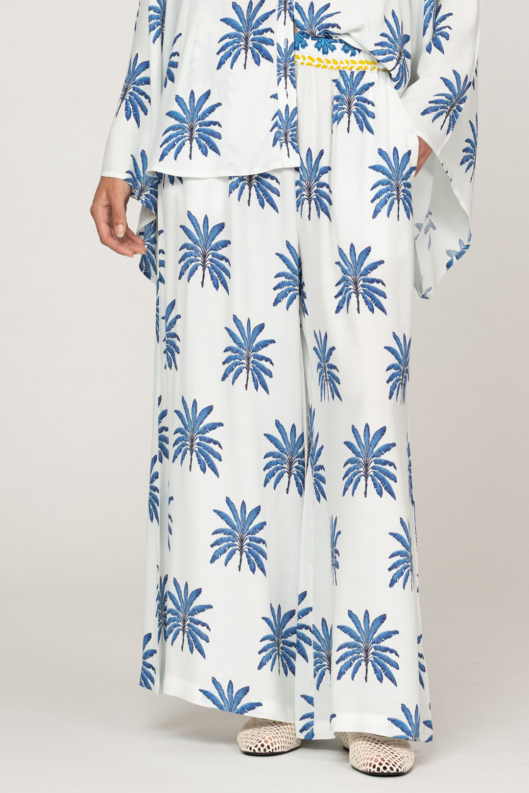Inoa Lina Silk Mix Trousers Light Blue Papier Colle Print