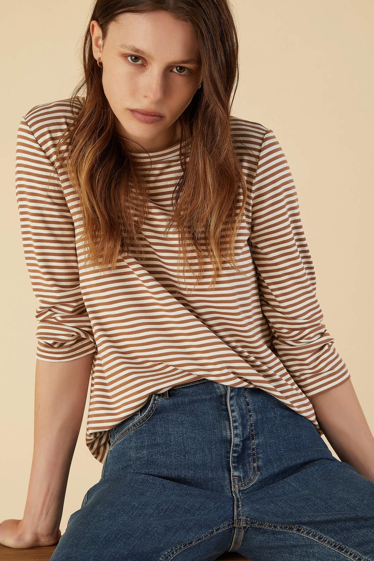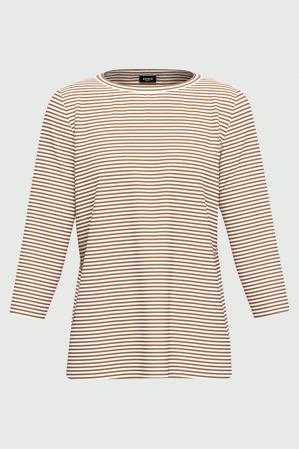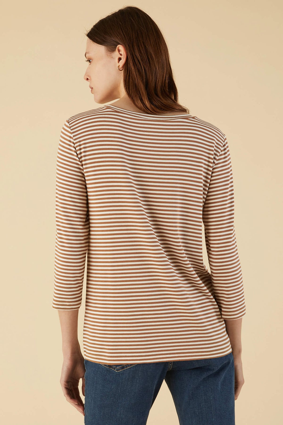Emme Scalo 2359710635200 Camel Brown Striped Long Sleeve T-Shirt - Olivia Grace Fashion