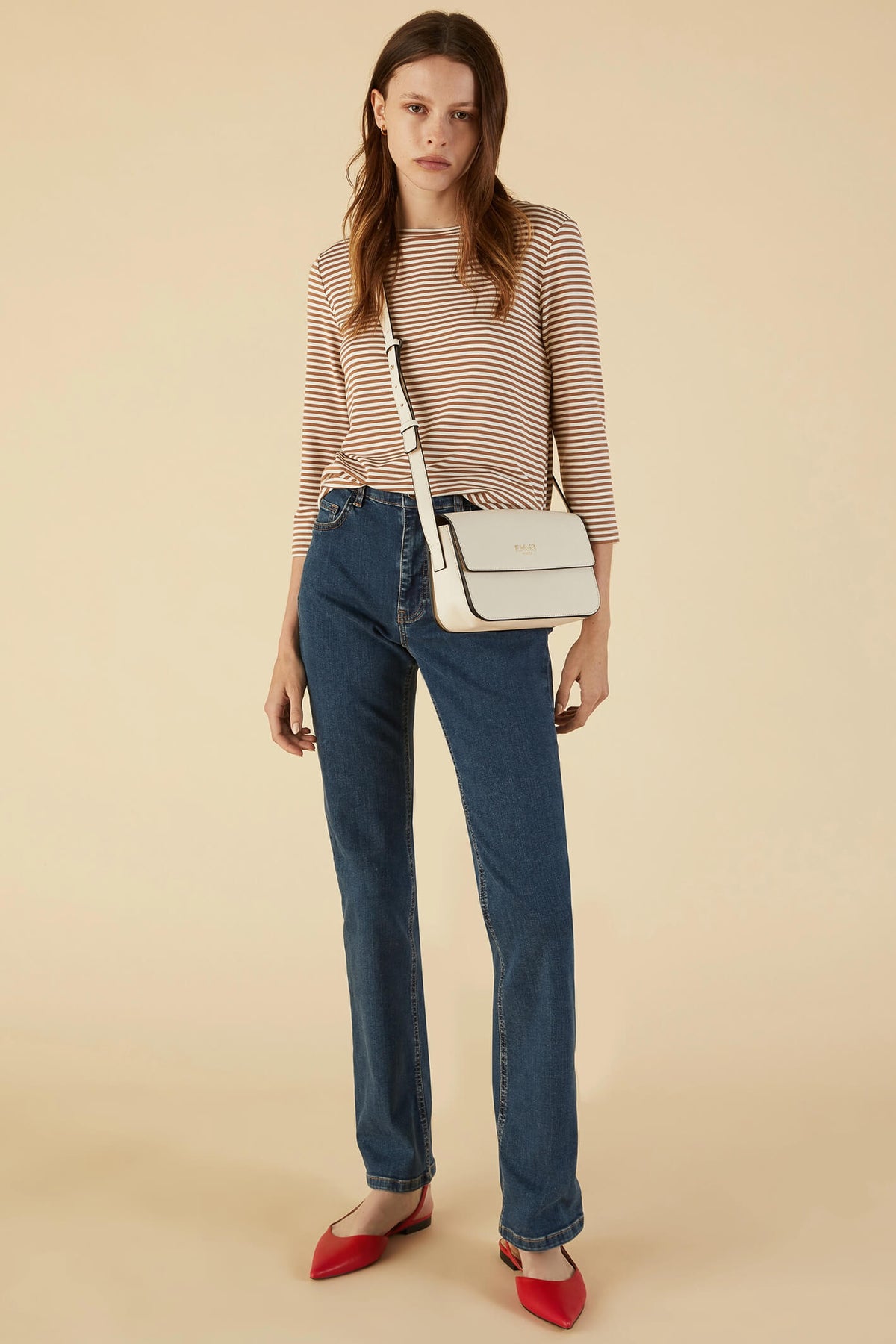 Emme Scalo 2359710635200 Camel Brown Striped Long Sleeve T-Shirt