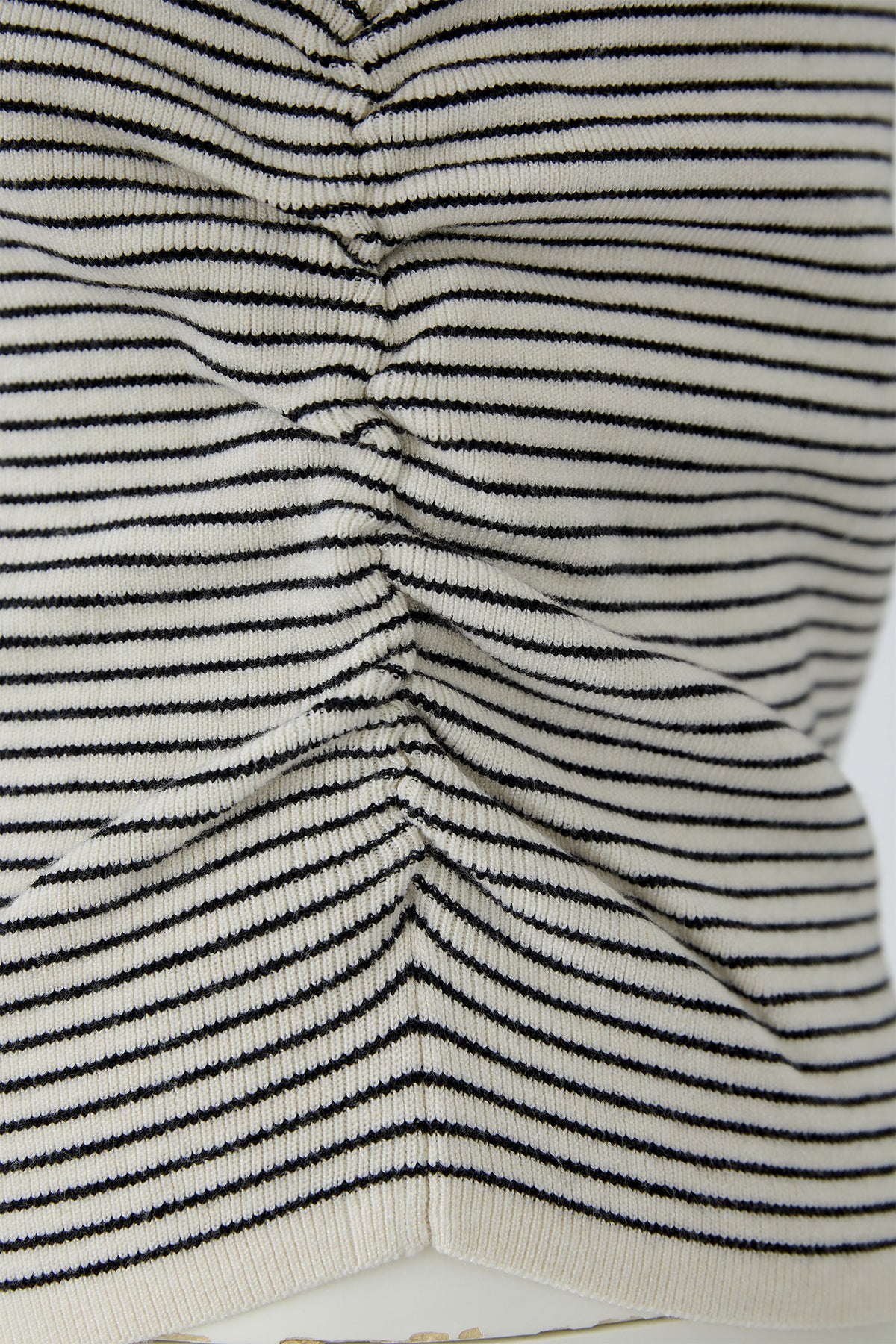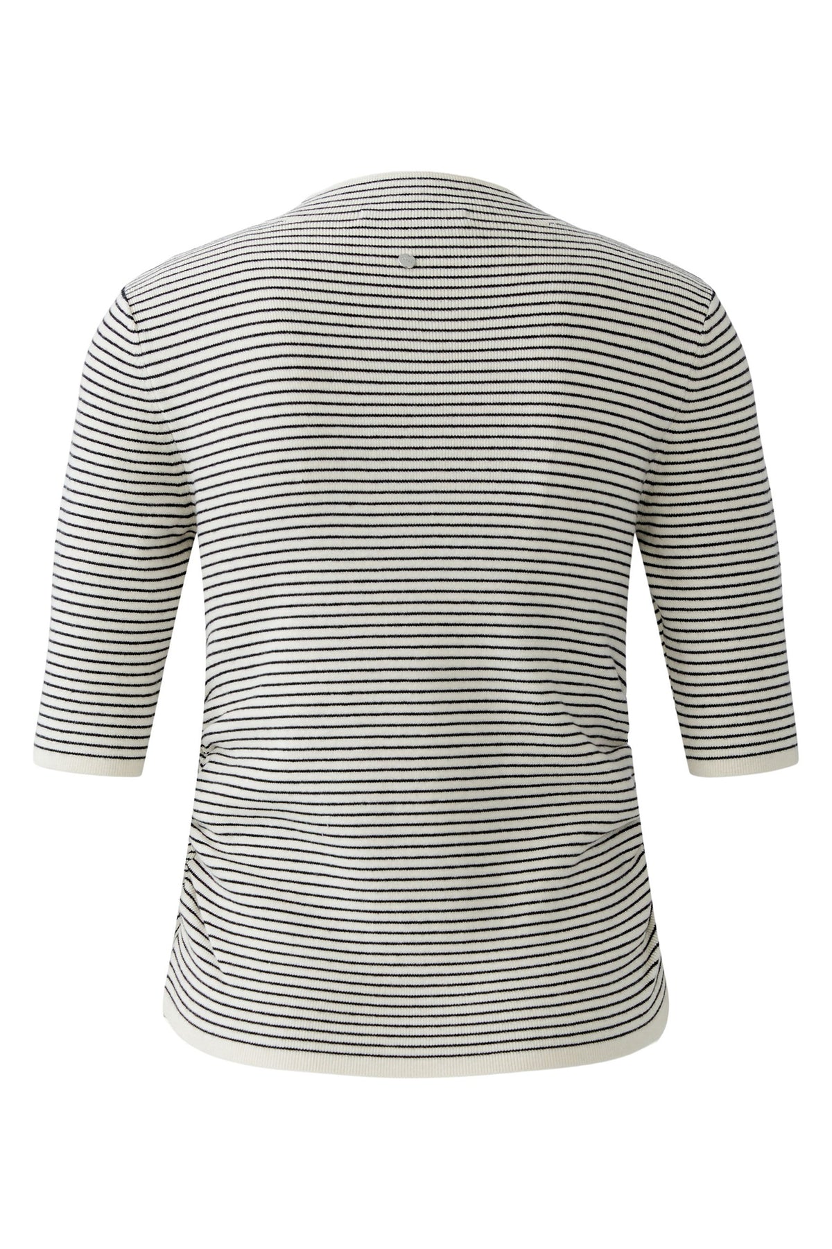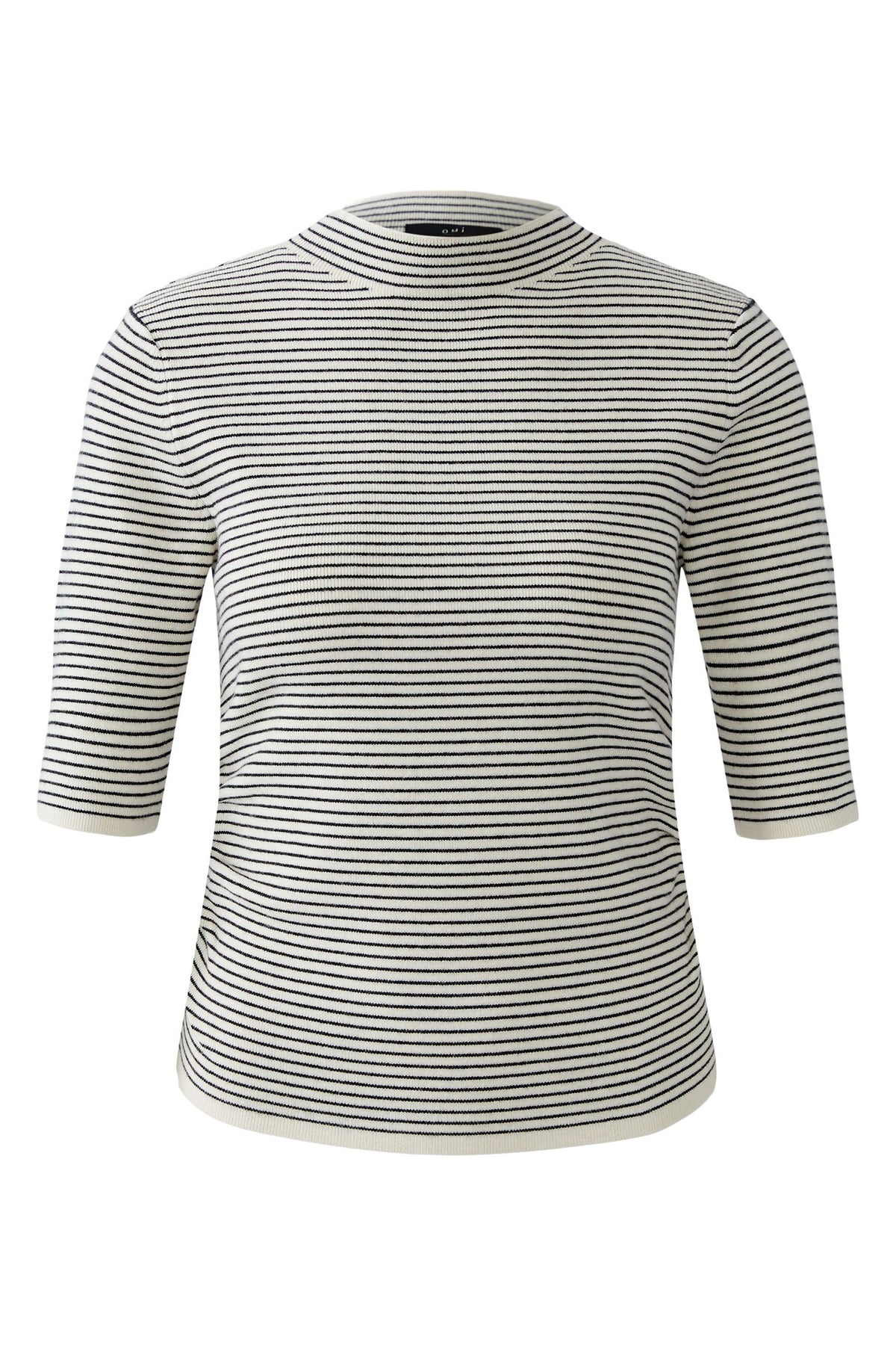 Make a monochrome statement with the Oui 86068 White Black Jumper 0109, a graphic knit that blends bold striping with relaxed elegance. Crafted from a soft cotton blend, this jumper features black horizontal stripes across a crisp white base, with a crew neckline and elbow length sleeves for a modern silhouette. A subtle circular detail at the upper back adds a touch of signature charm.