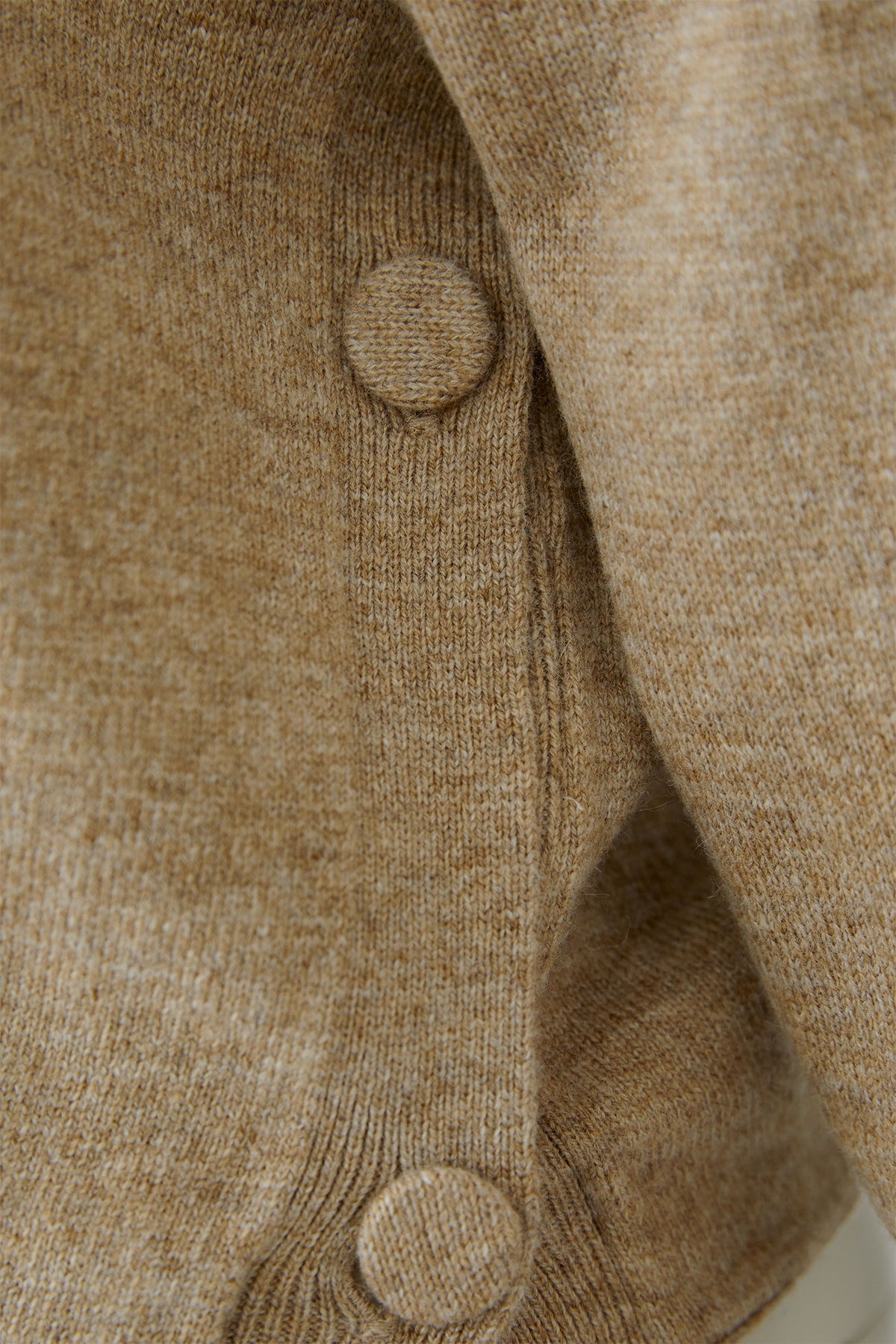 • Beige melange wool blend for tonal softness and warmth