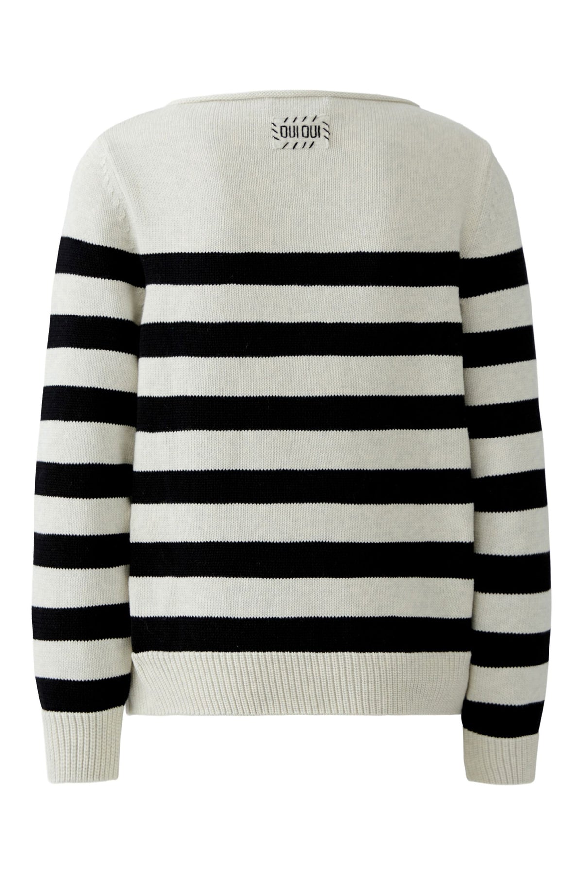 Channel timeless style with the Oui 86066 Striped White Black Jumper 0109, a monochrome essential that blends graphic simplicity with everyday comfort. Crafted from a soft knit blend, this jumper features evenly spaced black horizontal stripes across a crisp white base, offering a clean, modern look. The crew neckline and long sleeves keep the silhouette classic, while the relaxed fit ensures effortless wear.